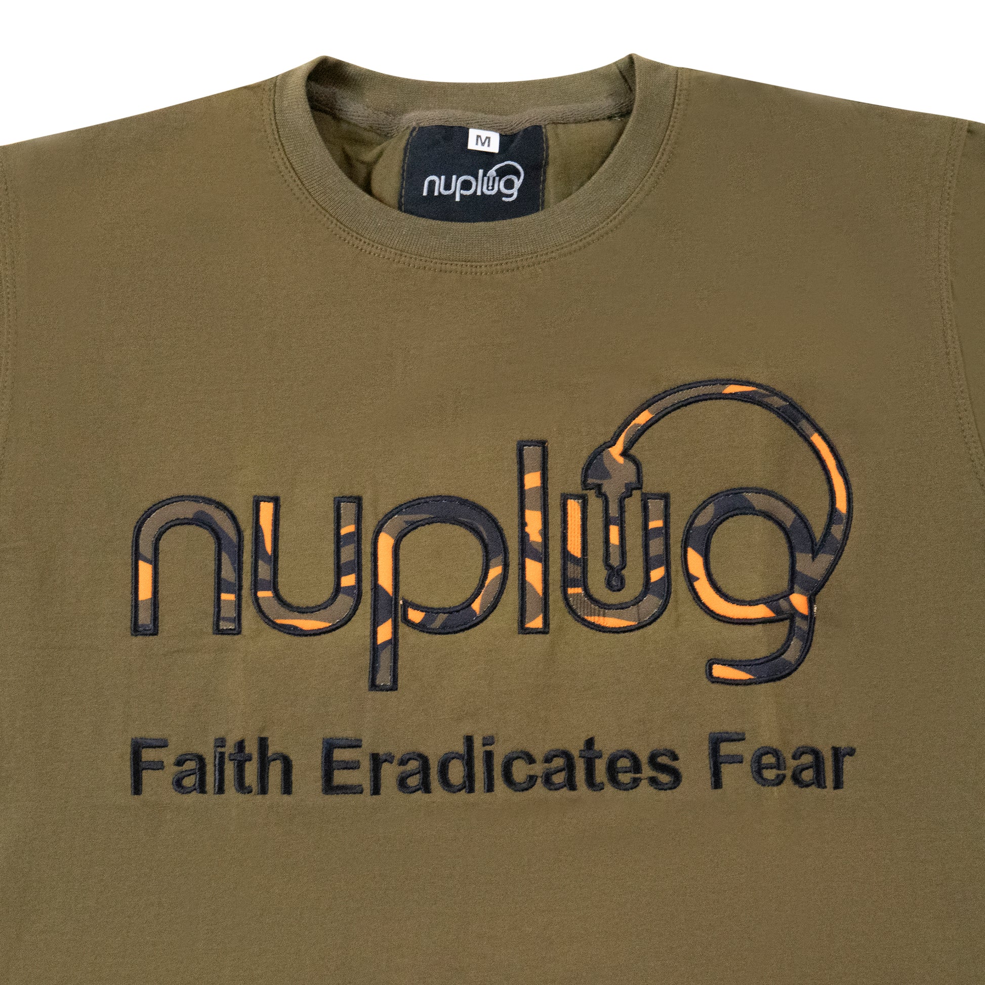 "Faith Eradicates Fear" Olive and Orange T Shirt